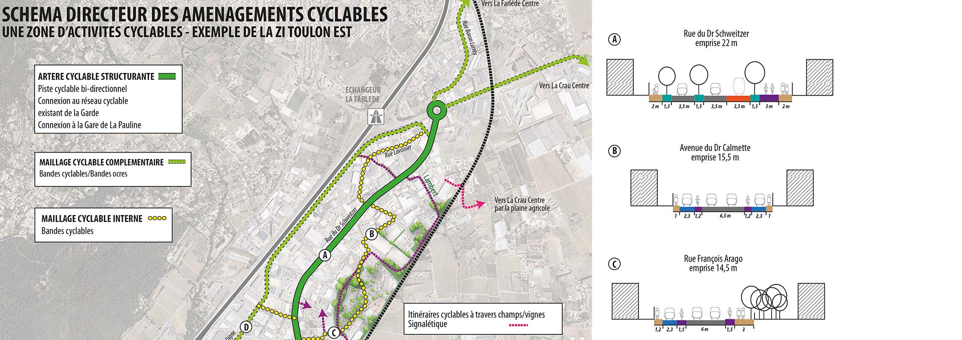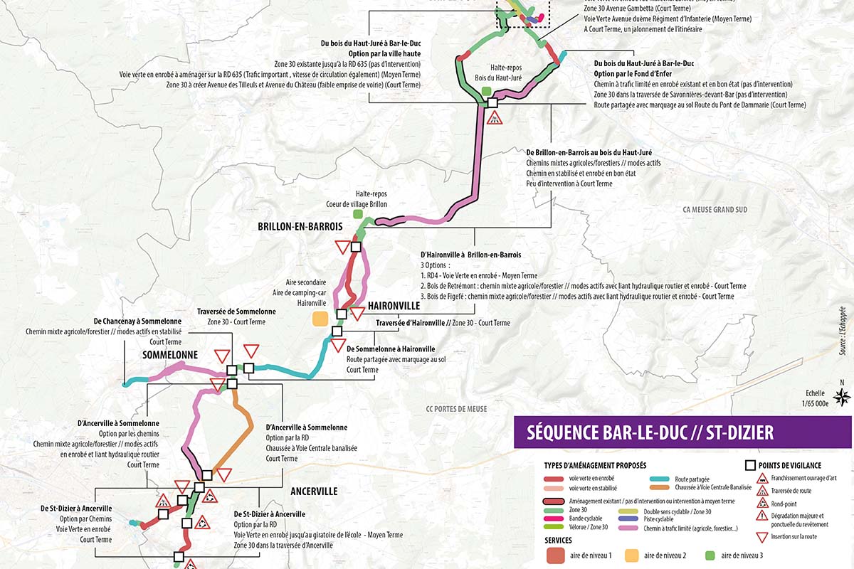 - Les solutions d’aménagements en fonction du contexte territorial et des contraintes techniques : proposition de scénario d’aménagement, schéma d’aménagement, profil en travers, analyses multi-critères